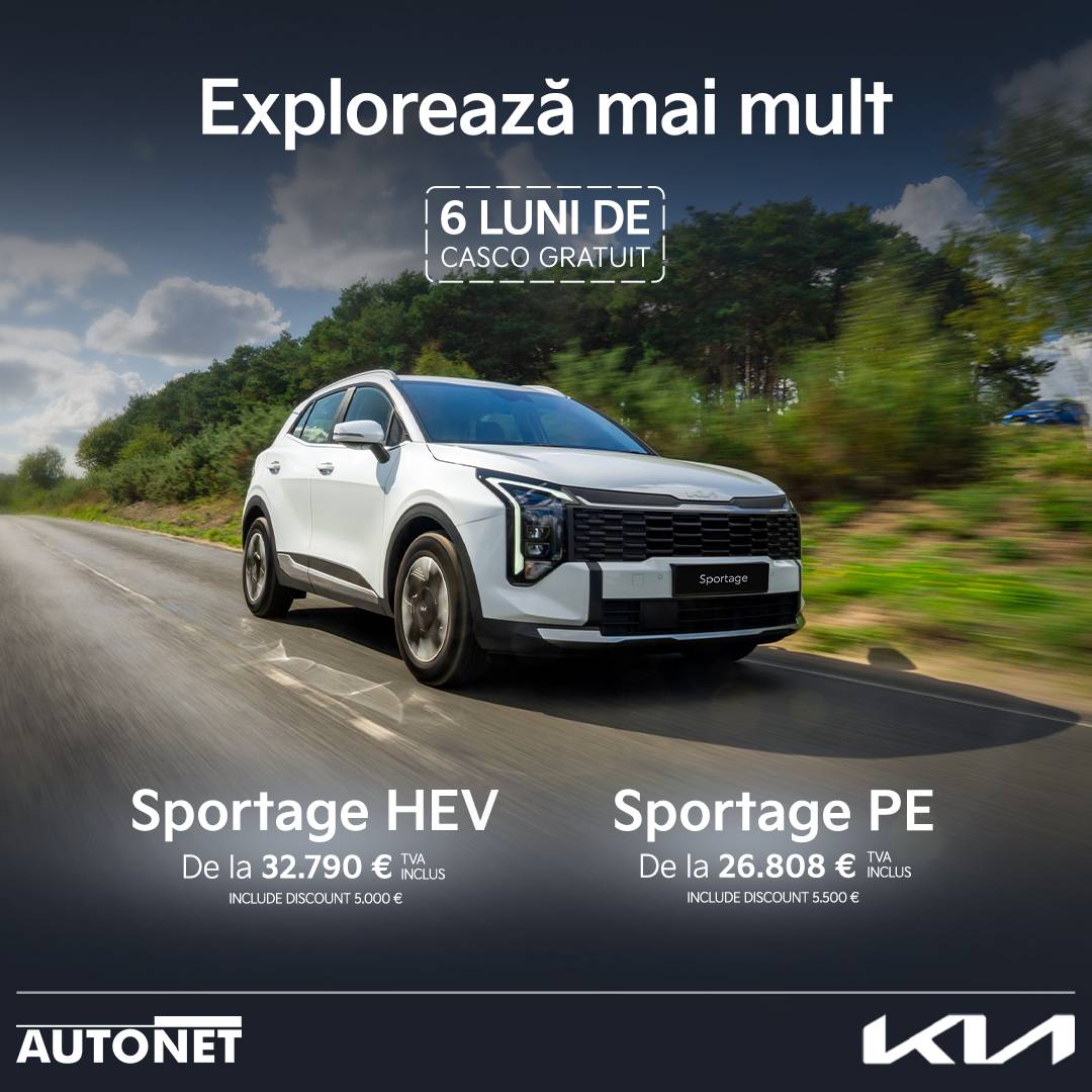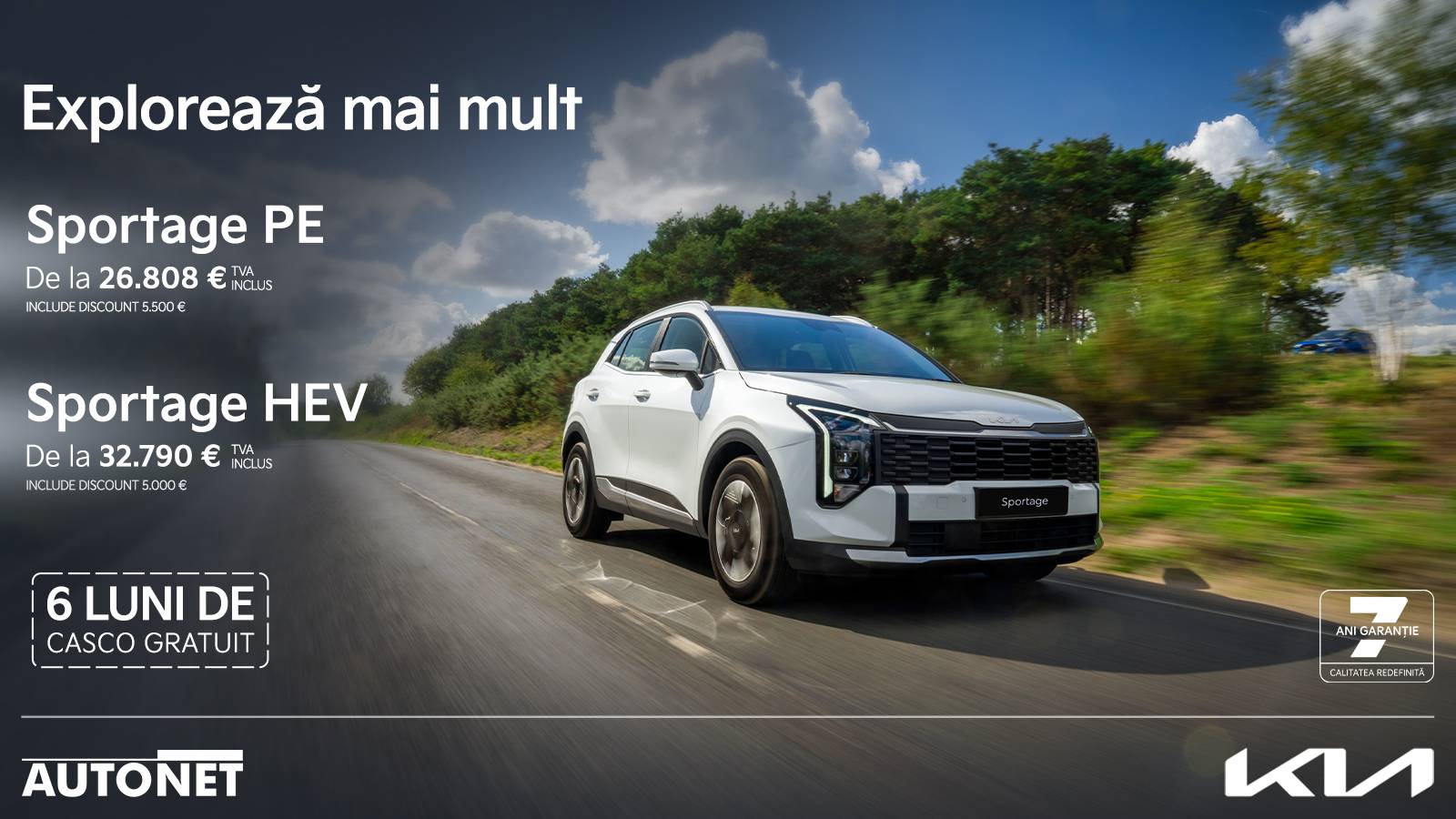 Descoperă noul Kia Sportage, SUV-ul pregătit pentru un nou sezon de explorare. Primăvara aceasta, ai mai multă libertate să mergi oriunde, în condiții promoționale avantajoase și cu beneficii suplimentare incluse.